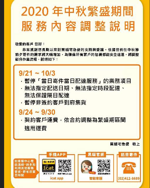 營業用戶(每半個月內有交易者)接單至9/17【四】出貨到9/23【三】但需至所在地之營業所取貨or改由冷藏到貨。