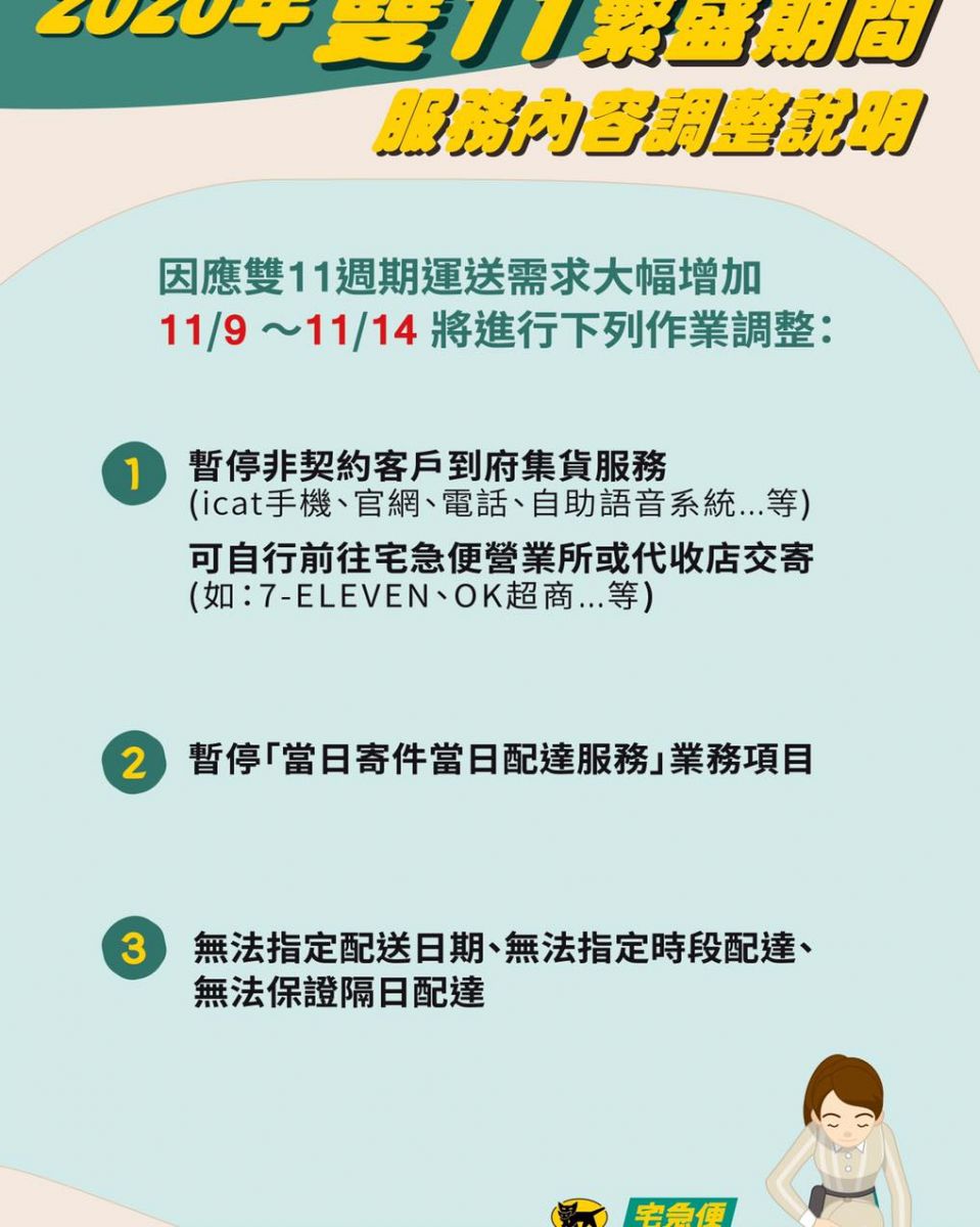 因應大陸雙11購物節.台灣也是跟進有極高的消費能力.所以往年這段期間黑貓都無法如期到貨.11/9-11/14(無法指定日期與時段)礙於香草料食材類農產品可能因延遲到貨.有極高毀損機率.所以暫緩散戶這段期間出貨.營業用戶可至當地營業所取貨或全部改由冷藏配送. 11/15恢復正常出貨. 期間如果造成不便也請多包涵。